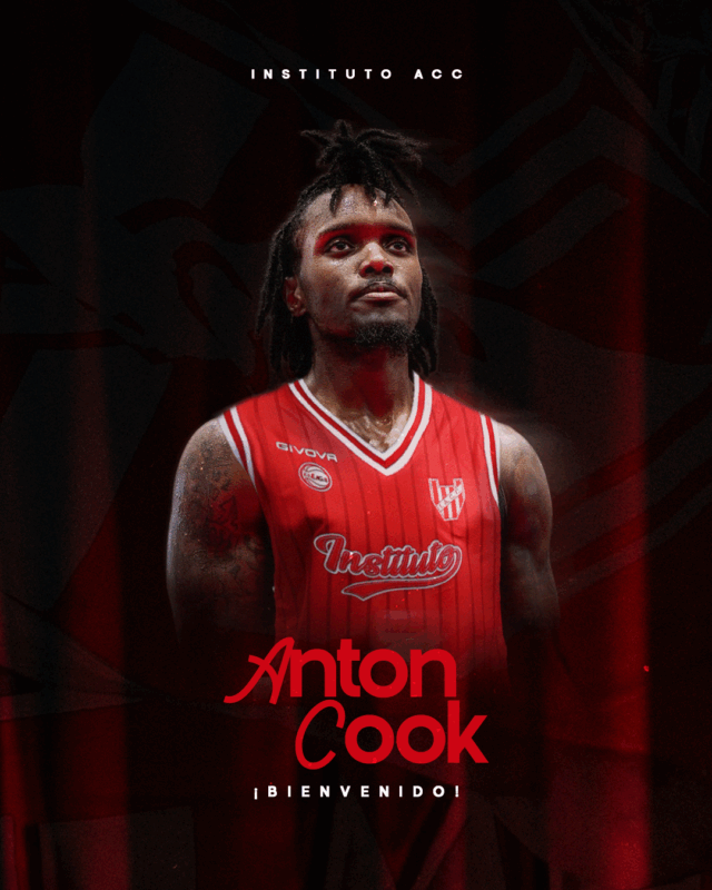 Instituto anuncia la incorporación del escolta estadounidense Anton Cook, de 1,88 metros y 30 años, quien se suma al plantel profesional para lo que resta de la temporada.