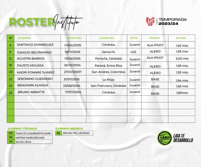Esta noche los juveniles de Instituto hacen su presentación en la temporada. Desde las 21hs, visitan a Unión de Santa Fe en el estadio Ángel Malvicinino por la fecha 1 de la LDD. El partido podrá seguirse por basquetpass.