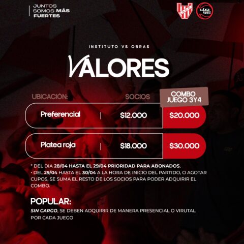 Continua la venta de ubicaciones en la sede y, de manera online, por el portal de socios. A partir de las 19hs, en las boleterias de la sede, se habilitará el remanente de entradas para los NO SOCIOS. Unicamente en efectivo.