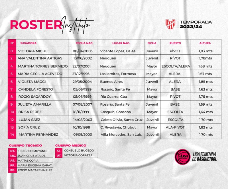 Esta será la segunda experiencia de Instituto en la Liga Femenina, luego del histórico debut de la campaña pasada.