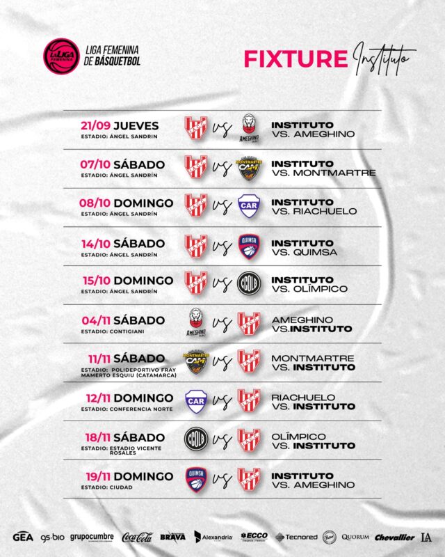 La temporada 2023/24 de la Liga Nacional Femenina dará inicio el jueves 21 de septiembre con el Torneo Apertura. En el mismo, Instituto integrará la región Norte junto a Ameghino, Montmartre, Olímpico, Quimsa y Riachuelo.
