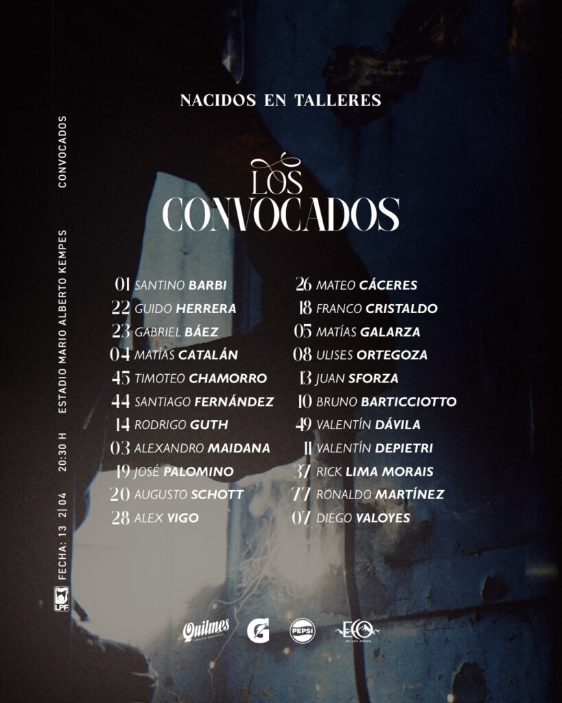 Con respecto a la última convocatoria se suman los nombres de Bruno Barticciotto y Valentín Depietri. En contrapartida no integran la nómina Giovanni Baroni, Emiliano Chiavassa, Lucio Ferrari ni Martín Río.