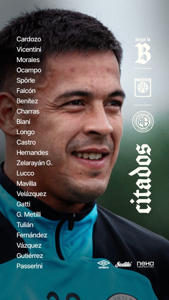 A través de sus canales oficiales, Belgrano dio a conocer la nómina de citados para el cotejo ante el León del Imperio.