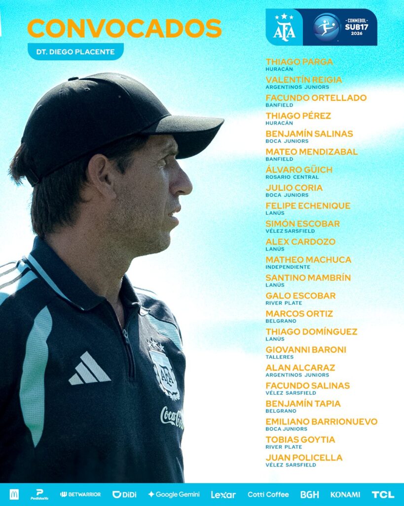 A través de sus canales oficiales, la Selección Argentina Sub-17 dio a conocer la nómina de convocados para el torneo que se disputará en Paraguay.